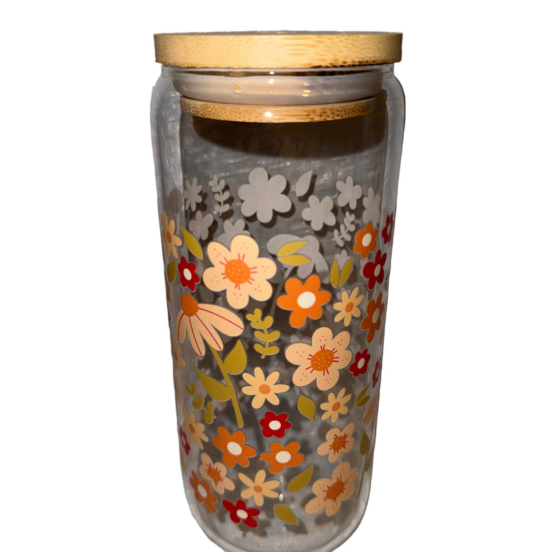Orange Florals 20 0z. Clear hand wash only